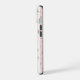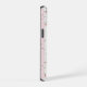Estuche Delicado de teléfono rosa con motivos florales, el romántico patrón floral con delicadas flores rosas y amarillas, con hojas verdes diseminadas por un fondo de rayas rosas y blancas. Las rayas blancas están bordeadas por un borde decorativo que recuerda a los encajes.