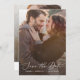 Esta delicada y oscura plantilla de fotografía superpuesta ahorra la tarjeta de fecha es perfecta para un boda moderno. El romántico diseño minimalista presenta una bonita y elegante tipografía blanca sobre un fondo fotográfico con un toque sofisticado.