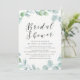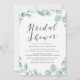 Las elegantes invitaciones a la ducha de novias son perfectas para las duchas de primavera y verano. El diseño incluye una moderna corona botánica de color verde agua, caligrafía elegante y un fondo blanco (cambia el color de fondo con la herramienta Personalizar).