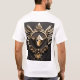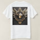 Águila de cristal: Diseño frontal de visión y determinación: un águila de cristal exquisito, meticulosamente detallado con facetas que captan la luz. El águila está a mitad de vuelo, las alas se extendieron, simbolizando la libertad ilimitada y la visión en ascenso. El efecto de cristal le da una calidad etérea y brillante, destacando la fuerza y precisión del ave. Paleta de colores: El fondo de la camiseta es un gradiente azul claro y suave, que recuerda a un cielo despejado al amanecer, realzando el brillo del águila. Las facetas de cristal se retratan en diferentes tonalidades de blanco, plata y azul claro, creando una imagen dinámica y vibrante.