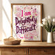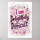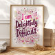 Abraza tu personalidad única con esta caprichosa impresión de arte "Soy Deliciosamente Difícil". Con una fuente manuscrita juguetona y delicados acentos florales, esta pieza celebra a aquellos que se atreven a ser diferentes. Perfecta para agregar un toque de encanto descarado a tu dormitorio, oficina o en cualquier lugar que necesites un recordatorio de tu fabulosa complejidad.
