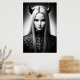 Retrato en blanco y negro de un joven señor demonio con pelo y cuerno rubios largos. Este es un arte generado por IA.