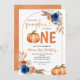 Denim Blue Rustic Calabaza Primer cumpleaños Invitación Calabaza Invitación Invitación Invitación Invitación Invitación Parte Denim Blue Rust Naranja Calabaza Primer cumpleaños Invitación, Denim Blue Rustic Calabaza Primer cumpleaños Invitación