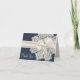 Tarjeta de agradecimiento de boda elegante hecha con gráficos que se asemejan a un patrón de damasco de mezclilla azul sobre azul. Gráficos adicionales de un encaje color marfil como un delicado bordado decoran el lado derecho del frente, y una cinta y lazo de satén color marfil se extienden en la parte media de la tarjeta. El texto en marfil en el frente dice Gracias. Personalice el texto en el frente y el texto azul en el interior según sus necesidades. Una forma encantadora de enviar sus agradecimientos después de la boda.