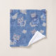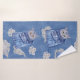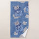 Gráficos de textura denim decorados con encaje de crema blanca para los amantes del gato con bolsillos de jean y gatitos azules, verdes y marrones.
