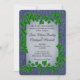 Una encantadora invitación al denim con una vid sobrepoblada. Ponga los nombres de la pareja de un lado con toda la información del boda y saludo al revés. Por favor, verifique tres veces el texto.