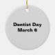 Este es un adorno divertido para tu dentista para el Día de la Dentista, 6 de marzo, para Navidades o en cualquier momento. Si no quieres la observancia y la fecha, puedes reemplazarla con un nombre. Debido al estilo de diseño, sólo se puede comprar en los adornos ROUND. Diseñado por Sheila Cicchi, Brownielocks.com. Todos Los Derechos Reservados.