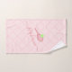 La toalla de cocina de diseño de tenis personalizada de color rosa coral con un monograma, nombre o texto personalizado presenta un sencillo y elegante tipo de letra de caligrafía femenina con raqueta de tenis, icono de pelota de tenis y patrón de fondo de red de canchas.