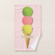 Toalla creativa de tenis con coloridas pelotas de tenis como helados en un fondo rosa. Editar texto para agregar nombre.