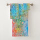 Este sello colorido está compuesto de dos imágenes superpuestas, la imagen en superposición es de parches de piel roja y azul que cambian a naranja, pero el blanco ha sido 'removido' y por lo tanto da visibilidad a la imagen azul y verde oscuro que está debajo.