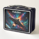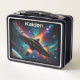 El momento en que una nave inesperada desembarca de una estación espacial o un barco materno es capturado en esta caja de almuerzo con temática espacial. Galaxias, estrellas y planetas coloridos completan la escena. Perfecto para cualquiera que ame la ciencia ficción, el espacio exterior y la exploración espacial.