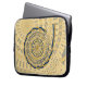 Este diseño de círculo concéntrico fue creado para representar la sensación de un mundo normalmente ordenado que se desmorona y se desmorona, con una cadena rota que rodea la imagen y las formas que se filtran.