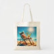 Bolsa de lona con una divertida foto de una bolsa de skeletCanvas con una divertida foto de un esqueleto descansando en la playa