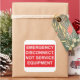 Una desconexión de EMERGENCIA, NO una etiqueta de pegatina de EQUIPO DE SERVICIO para que los electricistas la utilicen para cumplir los requisitos del artículo 230.85, letras E), apartados 1 y 2, del Código Eléctrico Nacional de 2023.