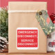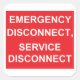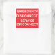 Una hoja de seis etiquetas de pegatina DESCONECTAR DE EMERGENCIA, DESCONECTAR DE SERVICIO para que los electricistas puedan utilizarlas para cumplir los requisitos del artículo 230.85, letras E), apartados 1 y 2, del Código Eléctrico Nacional de 2023.