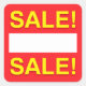 Pegatinas cuadrados, en blanco o de descuento con el texto "¡Venta!" en amarillo superior e inferior. En el centro hay un área blanca en blanco donde se puede añadir el porcentaje o precio de descuento. Grandes pegatinas de venta al por menor para su negocio. NOTA! LOS PEGATINAS SON GLOSSY, POR LO TANTO, REQUIERE UN SHARPIE O UNA PLUMA SIMILAR PARA ESCRIBIR SOBRE ELLOS O EL TEXTO SE OLVIDARÁ.