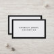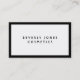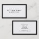 Una elegante tarjeta de visita con fondo blanco, texto negro y un borde negro.
