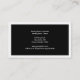 Una elegante tarjeta de visita con fondo negro, texto blanco y un borde blanco.