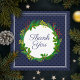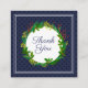 Gracias texto. Un elegante y moderno ilustracion de acuarela de color azul marino de Navidades con decoración de mistletoe, holly y pino. Texto a personalizar.