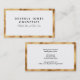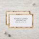 Una elegante tarjeta de visita con fondo blanco, texto negro y un falso borde dorado.