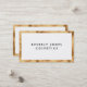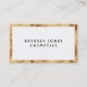 Una elegante tarjeta de visita con fondo blanco, texto negro y un falso borde dorado.