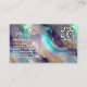 Una tarjeta de visita con un patrón de bonito de oro y piedra opal en tonos azul y violeta.