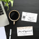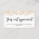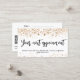 Fondo blanco decorado con finos purpurinas dorados, chispas. Texto negro. Atrás: Personaliza y agrega tu nombre de negocio, número de teléfono, correo, dirección de sitio web, código qr a tu sitio web o cuenta de medios sociales.
