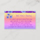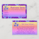Florecer en una multitud de colores. Personalizar este colorido púrpura femenino florido con azules y tarjeta de visita rosa a tu gusto. El pequeño cuadrado floral morado en la parte delantera y trasera se puede cambiar por el logo de tu negocio. El fondo morado oscuro se puede personalizar a cualquier color personalizado. El texto se puede modificar para adaptarlo o se puede eliminar el texto. Continúe floreciendo, y buena suerte con su aventura empresarial.
