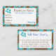 Florecer con confianza con esta pequeña tarjeta de diseño en una imagen con flores azules. El mini cuadrado floral de delante y de atrás puede cambiarse por el logotipo de su negocio. Todo el texto se puede modificar con la información de su empresa. El fondo amarillo de la parte delantera y trasera puede cambiarse a su color preferido.