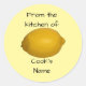 El limón amarillo entero está impreso en pegatinas personalizados, Desde la cocina de. El texto se puede personalizar fácilmente en los formularios de plantilla. El fondo es amarillo pálido y también se puede personalizar. Gracias por comprar en CherylsArt en Zazzle.