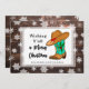¿Estás buscando una tarjeta de Navidades de estilo rural para desear a tus amigos y familia una Feliz Navidad? Aquí hay una dulce tarjeta con gráficos de botas de vaquero con un agujero en ellas, gorra de vaquero, y el texto, "Deseando una Feliz Navidad. Madera rústica y fondo de copas de nieve.