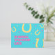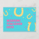 Una postal de la buena suerte, ofreciendo los zapatos afortunados del caballo.