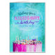 Deséenle a alguien un feliz cumpleaños con esta singular tarjeta caligrafía y estilo de letras a mano, que incluye el mensaje, "¡Deseándote un cumpleaños bendito y feliz, lleno de paz y alegría!" Incluye un marco blanco de estilo dibujado a mano sobre fondo azul y turquesa con textura digital con tortas de cumpleaños y velas. Inside incluye este mensaje pero puede personalizarse para que se ajuste a sus propias necesidades: ¡Feliz cumpleaños! Le deseamos cálidos deseos para las más ricas bendiciones de Dios en el próximo año.