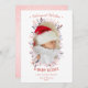 Una plantilla moderna y dulce de tarjeta de anuncio de bebé para las fiestas con un tema de invierno, que incluye un fondo de lámina triturada (efecto digital, ¡no es lámina real!), un marco botánico invernal con una superposición de tono rosa, caligrafía moderna y tipografía para el título: "Deseos más Cálidos y Besos de Bebé".