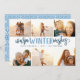 Nuestro elegante y festivo diseño de tarjetas de vacaciones es la manera perfecta de mostrar seis de tus fotos familiares favoritas. Diseño característico "Warm Winter Wishes" en tipografía azul con letras a mano sobre fondo blanco Personaliza con tus nombres y el año para un saludo de Navidades personalizados de moda.