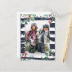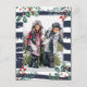 Envía esta tarjeta de Navidad con un diseño divertido que presenta flores de Navidad en rayas azules marino. Personaliza añadiendo tu foto favorita.