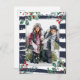 Envía esta tarjeta de Navidad con un diseño divertido que presenta flores de Navidad en rayas azules marino. Personaliza agregando tu foto favorita.