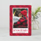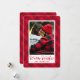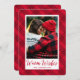 Envíe a sus seres queridos una hermosa y cálida tarjeta fotográfica de vacaciones esta temporada de vacaciones. La tarjeta de fotografía de Navidad incluye las palabras "Warm Wishes" en un estilo de letra de guión elegante, marcadores de posición para una foto y texto, y un rústico patrón de manto rojo en la parte delantera y trasera de la tarjeta.
