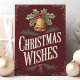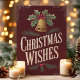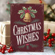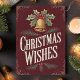 Envía saludos navideños atemporales con esta hermosa tarjeta de "Deseos de Navidad" ilustrada. Con una campana dorada de estilo vintage adornada con acebo y bayas, sobre un fondo rico en color burdeos, esta tarjeta emana un encanto navideño nostálgico. La letra dibujada a mano y el diseño elegante la hacen perfecta para compartir sinceros deseos navideños con seres queridos. Ideal para cualquiera que aprecie la estética navideña tradicional y clásica, esta tarjeta añadirá un toque cálido y festivo a su temporada navideña.