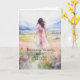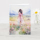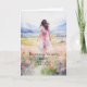 Una hermosa tarjeta de cumpleaños para tu sobrina. Una joven de cabello oscuro caminando en un campo de flores silvestres