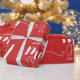 Deseos de feriado de merry | Papel de envolvimiento de vacaciones de 2014. Diseño tipográfico por ELKE CLARKE©. Preparar regalos de vacaciones para sus seres queridos se hace fácil con este versátil y simple documento de envoltura de vacaciones con las palabras "Deseándote una Feliz Navidad y un Feliz Año Nuevo" escrito en un guión blanco, texto de tipo de letra sobrepuesto sobre un sólido color de fondo rojo. Otros colores disponibles en la tienda o bajo petición.