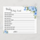 Deseos florales azules para la ducha de bebé con tarjeta de juego de Recién nacido. Juegos de versión en inglés y español incluidos (frontal y posterior). Para personalizar (cambiar la redacción, el color del tipo de letra, el estilo del tipo de letra ), haga clic en personalizar, desplácese hacia abajo y haga clic en el vínculo "hacer clic en el personalizar más adelante". CÓMO REPRODUCIR: El invitado rellenará la tarjeta después de la redacción proporcionada para compartir sus mejores deseos para el Recién nacido