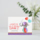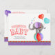 Baby Shower keepsake desea una postal para la ducha de bebé. Perfecto para los fiestas con ducha para bebés. Qué mejor manera de dar la bienvenida a tu recién nacido al mundo que haciéndole saber cuánto es amado por tus amigos y familia. Haga que cada cliente añada su bendición y sus deseos especiales a cada tarjeta. Dándole un regalo especial de mantenimiento. Presenta un lindo y caprichoso estilo circo, un elefante gris balanceándose en una bola soplando burbujas. Arte y diseño de acuarelas únicas de Sarah Trett www.sarahtrett.com para www.mylittleeden.com