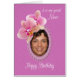 Una tarjeta de cumpleaños para una sobrina. Las orquídeas simbolizan el amor, el lujo y la fuerza, cualidades que reflejan la belleza de su espíritu. En su cumpleaños, desearía que su día fuera tan exquisito e inolvidable como estos florecimiento. Añade su foto para crear una tarjeta única especialmente para ella.