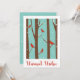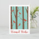 Deseos más cálidos Tarjeta navideña de fotos de aves rojas Pájaros rojos ilustrados sentados en ramas de árboles mientras cae la nieve, todo sobre un fondo verde azulado. Deseos más cálidos en el fondo de un color rojo profundo. En la parte de atrás, el mismo fondo verde azulado, una foto, tu mensaje de vacaciones y el nombre de tu familia, con la nieve cayendo en el fondo.