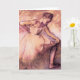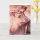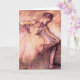 Desgasifique la tarjeta de felicitación rosada de la bailarina. Engrase en lona a partir de 1900. El artista francés Edgar Degas pintó algunas de las pinturas más bonitas del ballet del movimiento impresionista. La bailarina rosada es un pastel que ofrece a una bailarina bonita que lleva un tutú rosado que estira antes del ballet. Un gran regalo para los fans del ballet, bailarinas, desgasifica, y baila pinturas.
