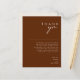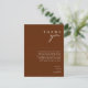 Este simple desierto | Tarjeta de agradecimiento de Cinnamon oscuro es exactamente lo que buscas para completar tu boda de boho rústico moderno. Perfecto para una minimalista vibra occidental vintage o para un ambiente bohemio de otoño retro. La escritura blanca natural mínima aparece con este colorido fondo otoñal. Puedes elegir mantenerlo como es o personalizarlo con tus propias obras de arte o fotos. Desplácese por la colección para seleccionar otros elementos que harán que su boda se celebre con autenticidad!
