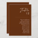 Este simple desierto | El gráfico de números de la tabla de Cinnamon oscuro es exactamente lo que está buscando para completar su boda de boho rústico moderno. Perfecto para una minimalista vibra occidental vintage o para un ambiente bohemio de otoño retro. La escritura blanca natural mínima aparece con este colorido fondo otoñal. Puedes elegir mantenerlo como es o personalizarlo con tus propias obras de arte o fotos. Desplácese por la colección para seleccionar otros elementos que harán que su boda se celebre con autenticidad!