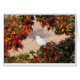 Una tarjeta de nota que muestra una garganta nevada en medio de un manto de color otoño.