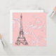 Sorprendente invitación de estilo francés con la Torre Eiffel de pie delante de un fondo rosa deslizante. Juega con colores de papel, pero recuerda cambiar primero el fondo rosado a blanco. ¡O simplemente haz el fondo de cualquier color que quieras! Ofrecemos este lindo diseño en unas cuantas variaciones diferentes.